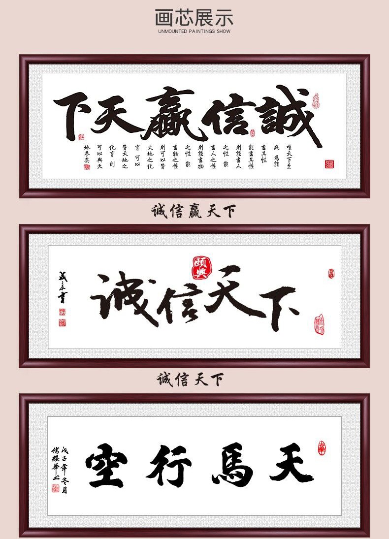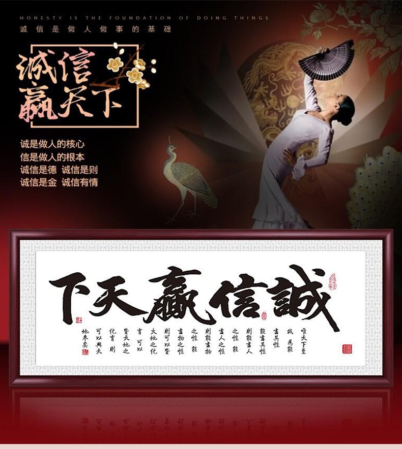 | 商品名称 | 春半诚信赢天下字画书道作品真迹新中式客间装饰画办公室吊るるし絵书房茶室壁画装表装帯枠开业赠り物牌扁額诚信赢天下60*145 cm典雅红褐实木枠 |