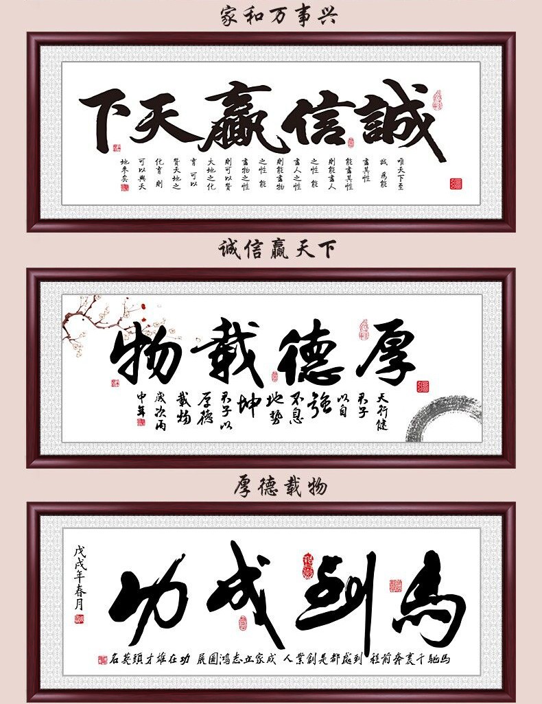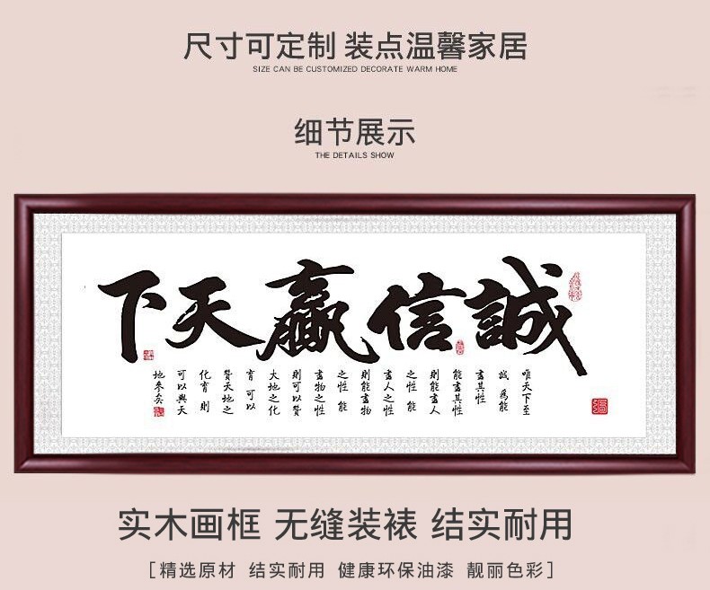 | 商品名称 | 春半诚信赢天下字画书道作品真迹新中式客间装饰画办公室吊るるし絵书房茶室壁画装表装帯枠开业赠り物牌扁額诚信赢天下60*145 cm典雅红褐实木枠 |