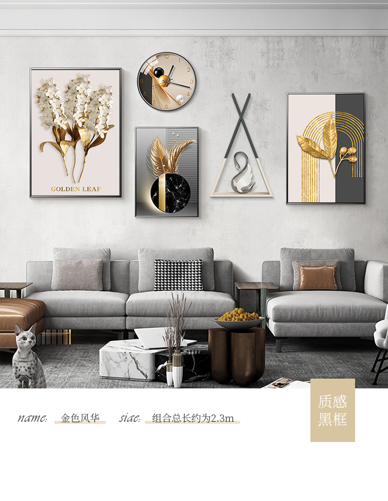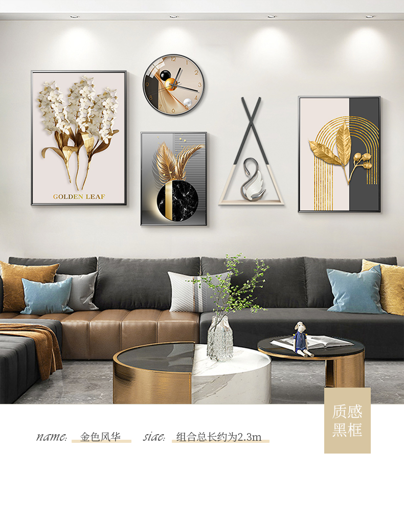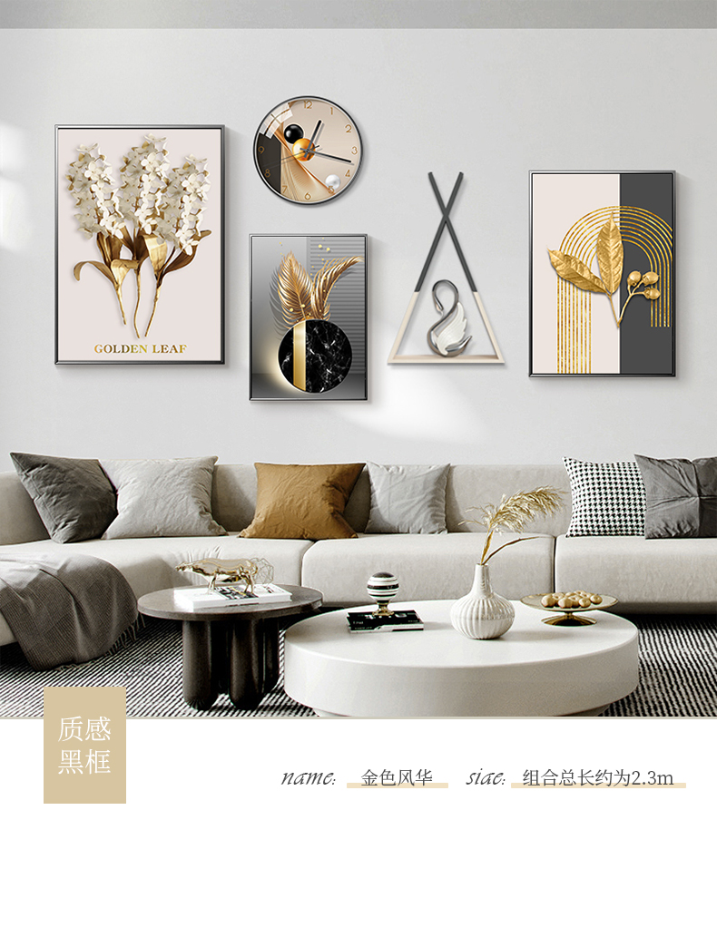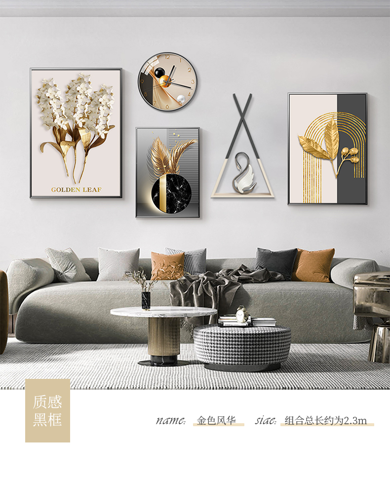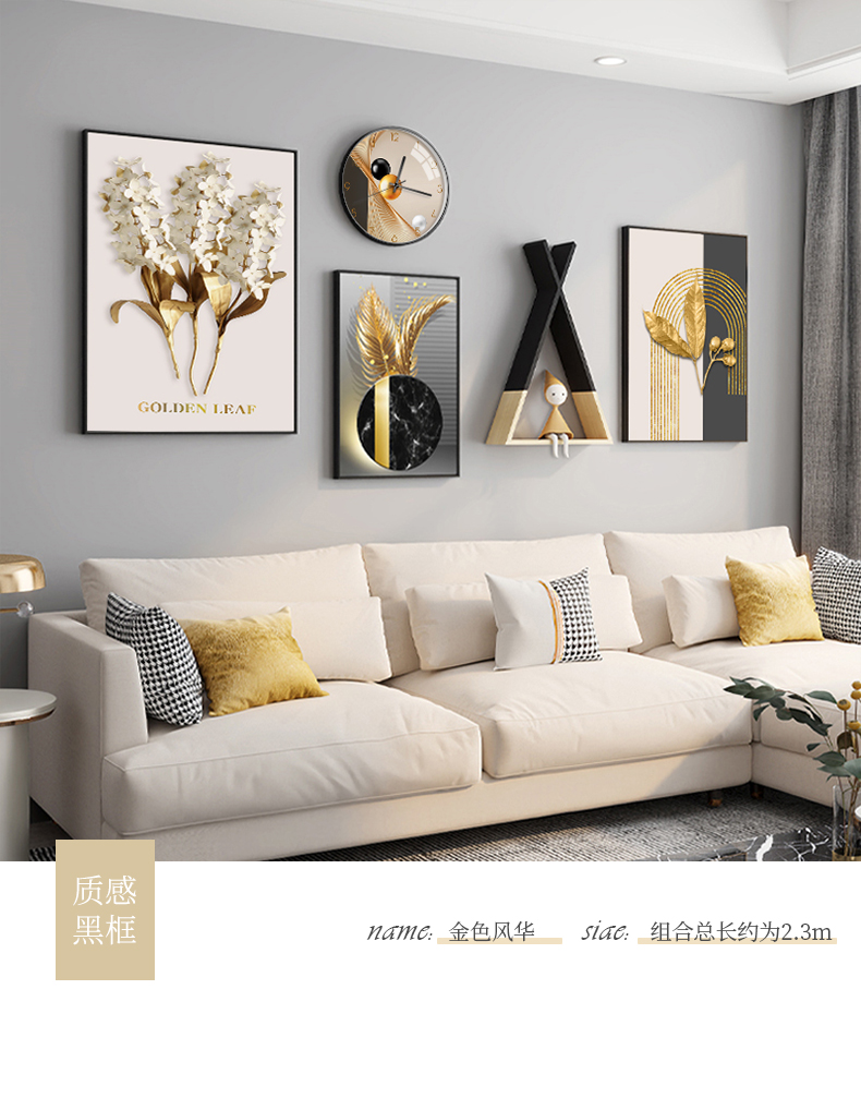 集简季现代单纯客间装饰画ソファ背景壁吊吊,绘北欧轻奢创造性组合壁画黄金风华组合长2.3米(提案2.5-3米壁面)