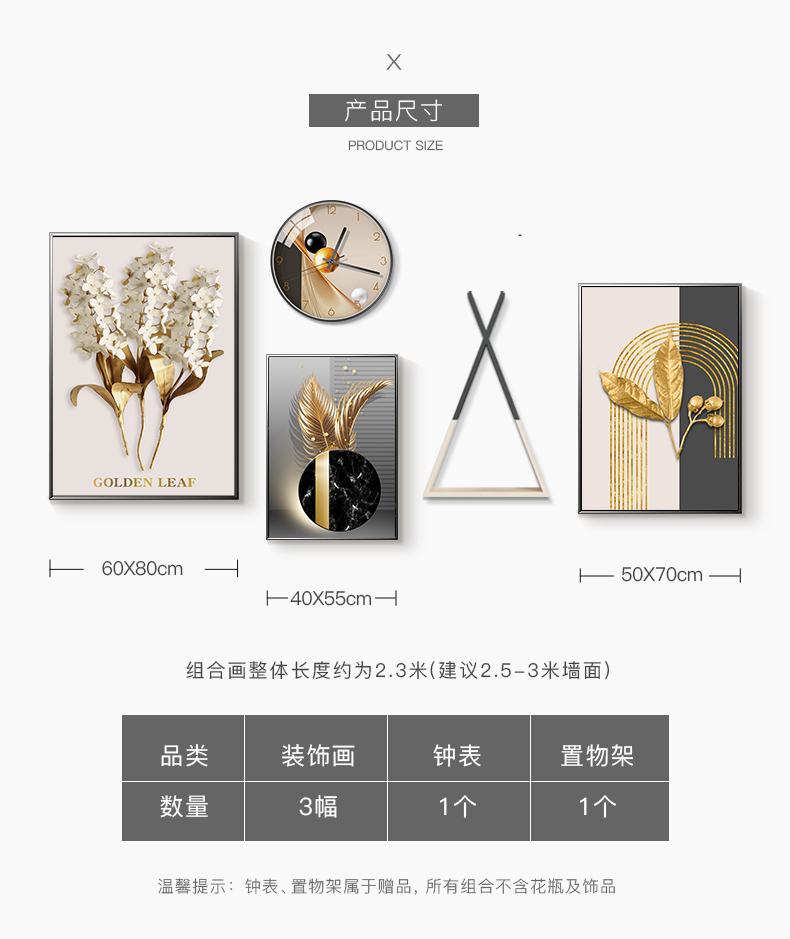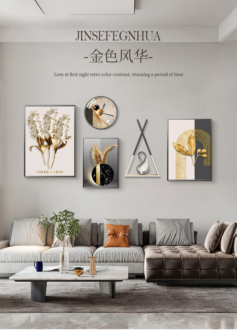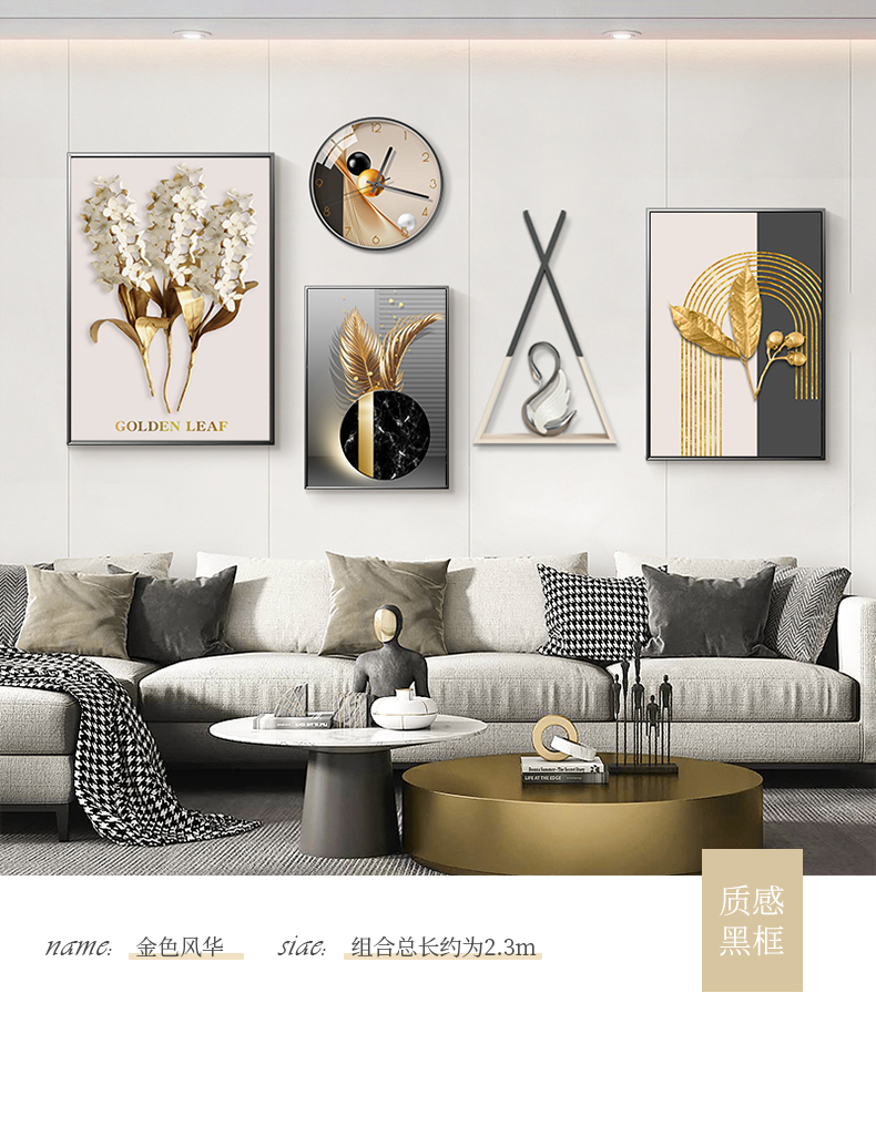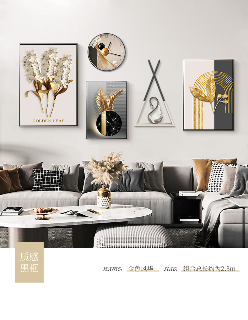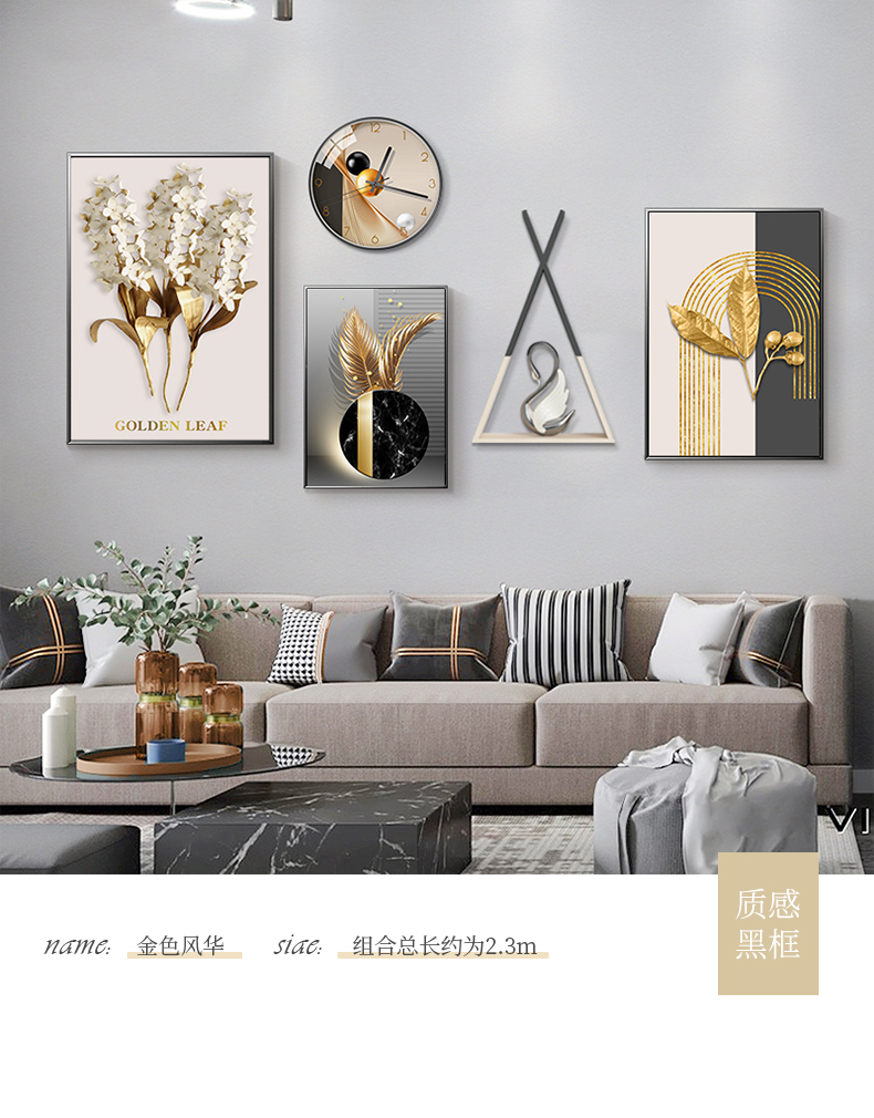 集简季现代单纯客间装饰画ソファ背景壁吊吊,绘北欧轻奢创造性组合壁画黄金风华组合长2.3米(提案2.5-3米壁面)