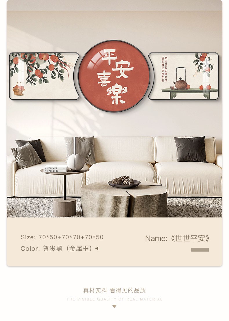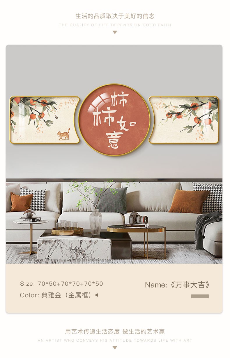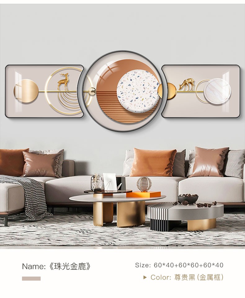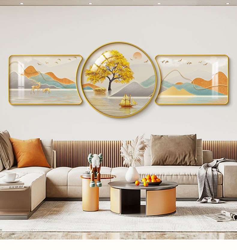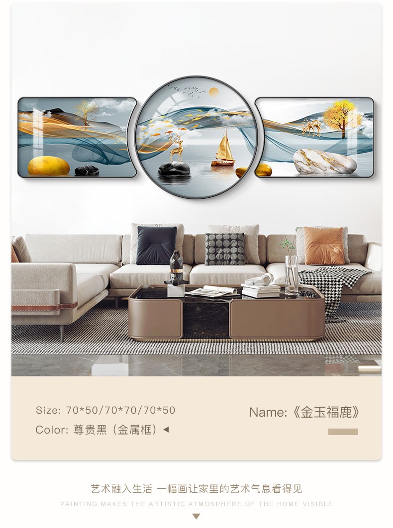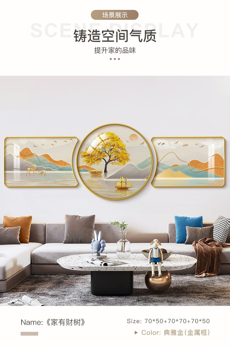 | 商品名称 | 倍思家現代単純客間装飾画軽奢大気ソファー背景壁壁画山水風景吊り上げ絵異形円形三連画2022年新案家有財樹60*40/60*60/60*40(ハイエンド水晶画面) |