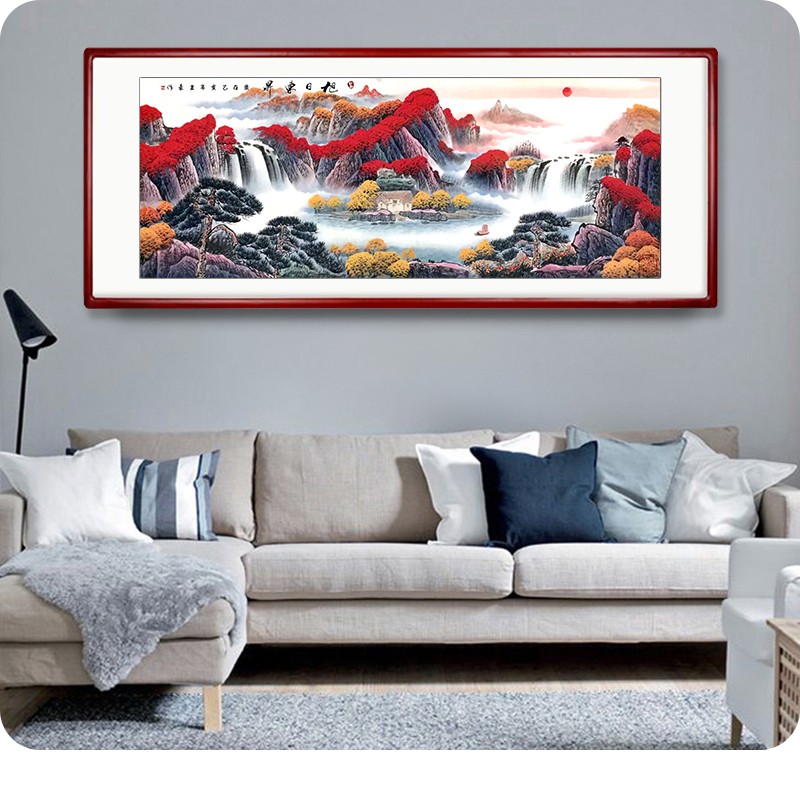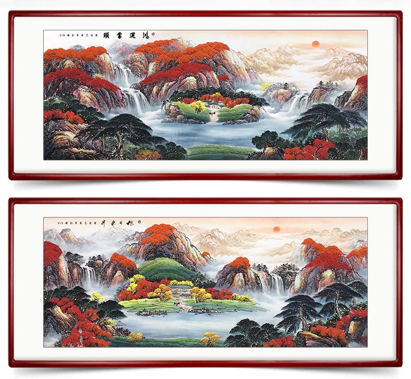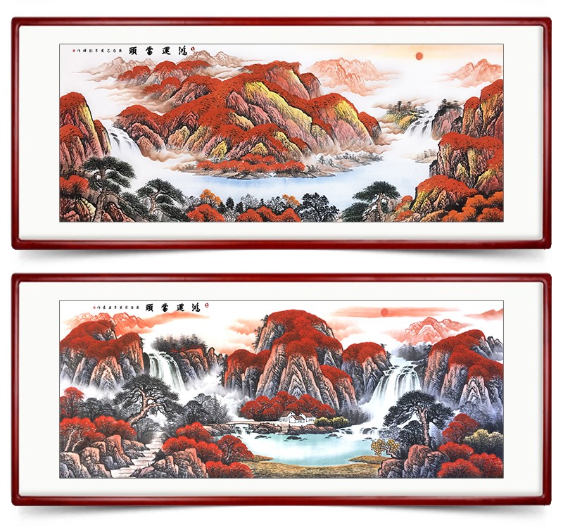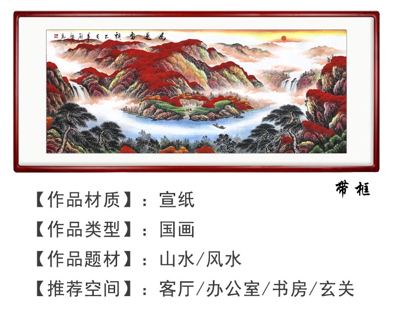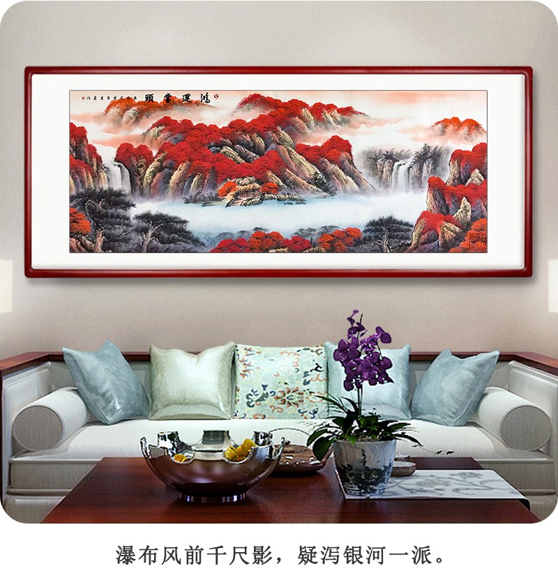 悠弦纯手绘真迹原稿鸿运当头国画風景画风水靠山图客厅装飾画办公室字画聚宝盆招财吊るし絵新中式艺术水墨画墙画 A款鸿运当头 实木画框163*83厘米【图片 价格 品牌 报价】-