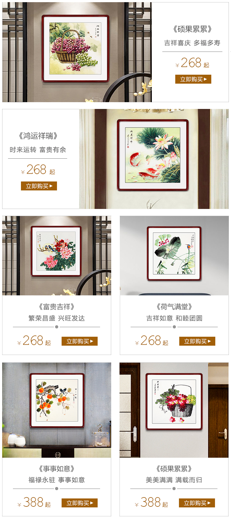 颜堂レストラン装飾画国画客厅装飾画中式ポーチ花鸟吊るし絵寝室床头装飾画柿子三连水墨吊るし絵 事事如意 实木画框+有机玻璃65*65厘米【图片 价格 品牌 报价】-