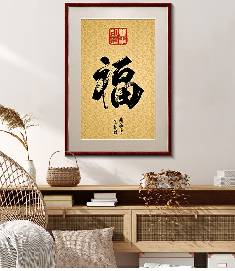 紫腾随轩福字吊るし絵新中式客厅レストラン装飾画ホームポーチ墙画招财风水縦型壁画 图1 60*80cm红木色实木框【图片 价格 品牌 报价】-