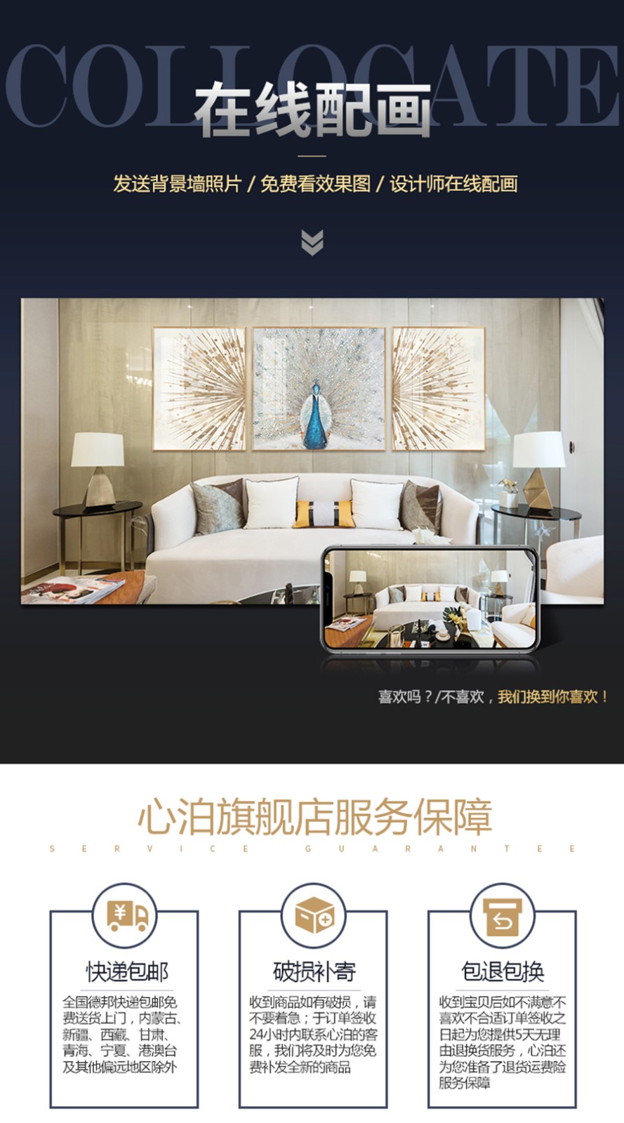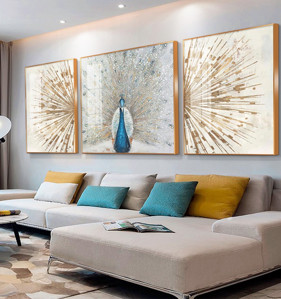 心泊(SIMPLE S)現代単純简欧轻奢客厅装飾画欧式沙发背景墙画ポーチ壁画抽象レストラン廊下通路三連孔雀 海棠花 55x70*2-80x70中套装【图片 价格 品牌 报价】-