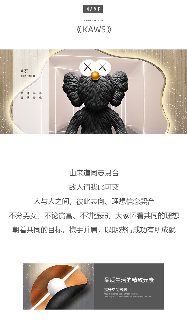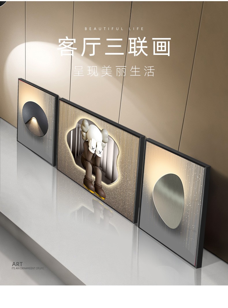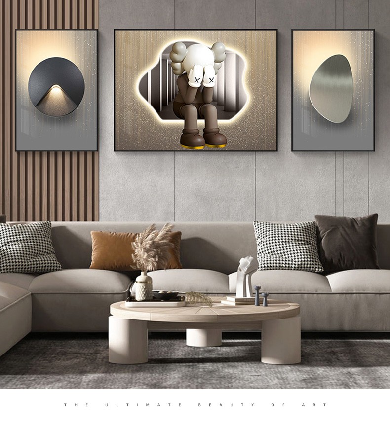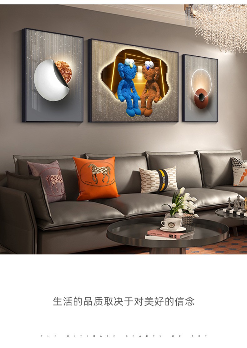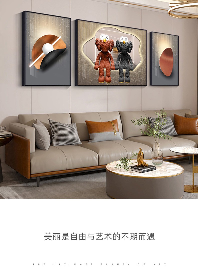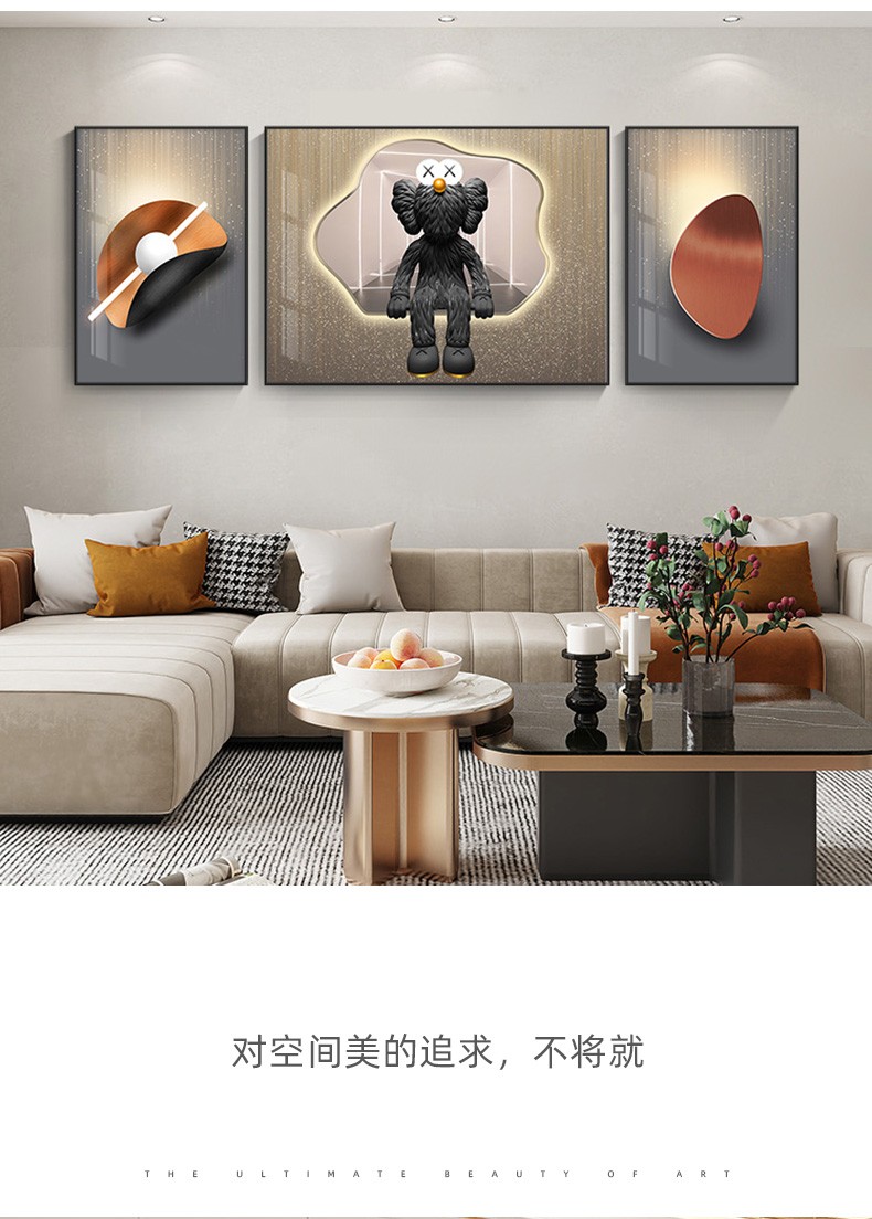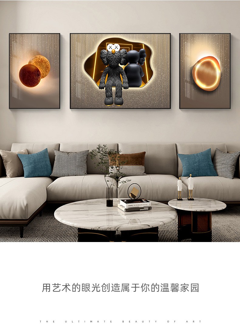 飾晴画意 轻奢客厅装飾画現代卡通暴力熊三連壁画単純沙发背景墙吊るし絵寝室レストラン晶瓷画 Kaws-01 小组合(左右40*60中间80*60)晶瓷画【图片 价格 品牌 报价】-