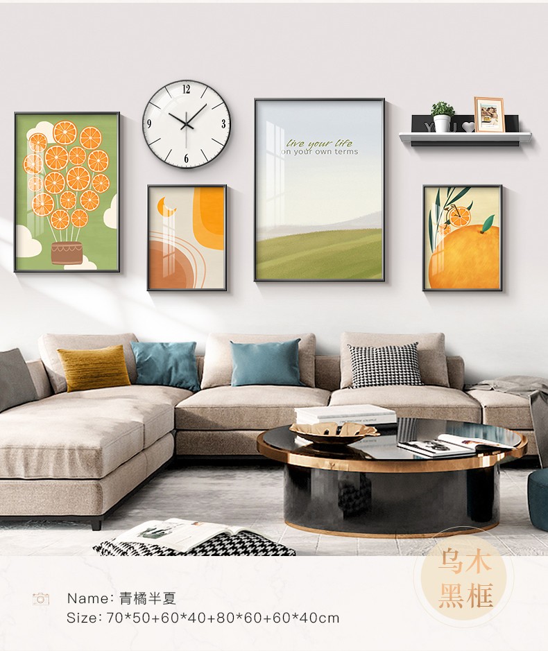 好久不见 現代単純客厅装飾画小清新抽象沙发背景墙壁画钟表组合吊るし絵 时光花语 小组合(建议2-2.5米墙面)油画布面+PS黑框【图片 价格 品牌 报价】-