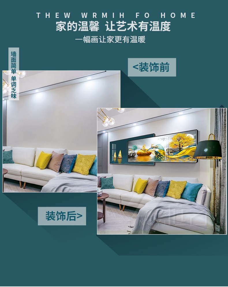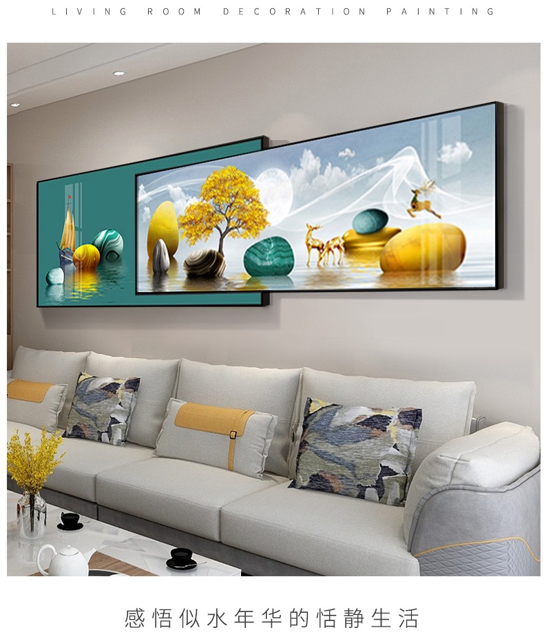 飾晴画意 客厅装飾画現代単純沙发背景画寝室床头画轻奢晶瓷画招财壁画叠加吊るし絵 吉祥金鹿-01 40*100大+30*100小=总长150/晶瓷画【图片 价格 品牌 报价】-