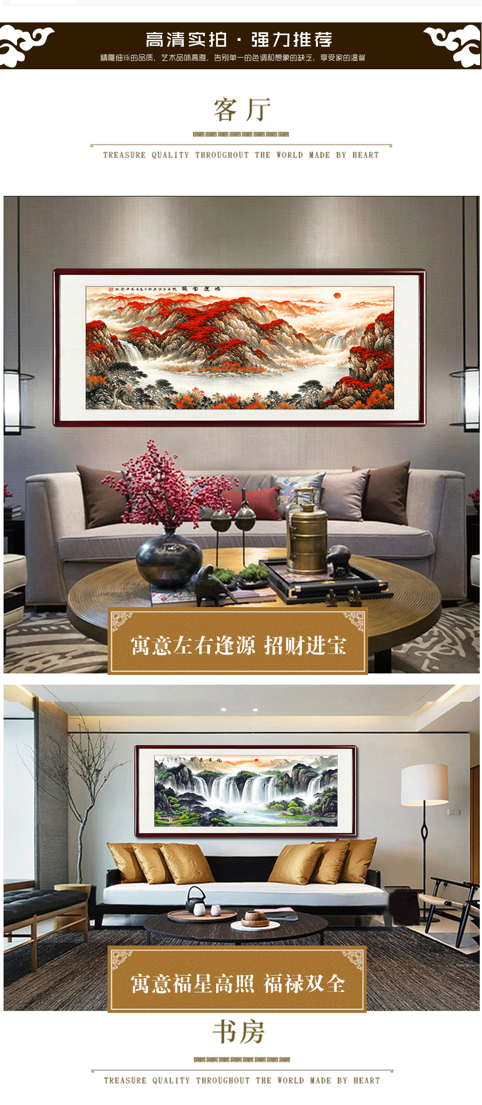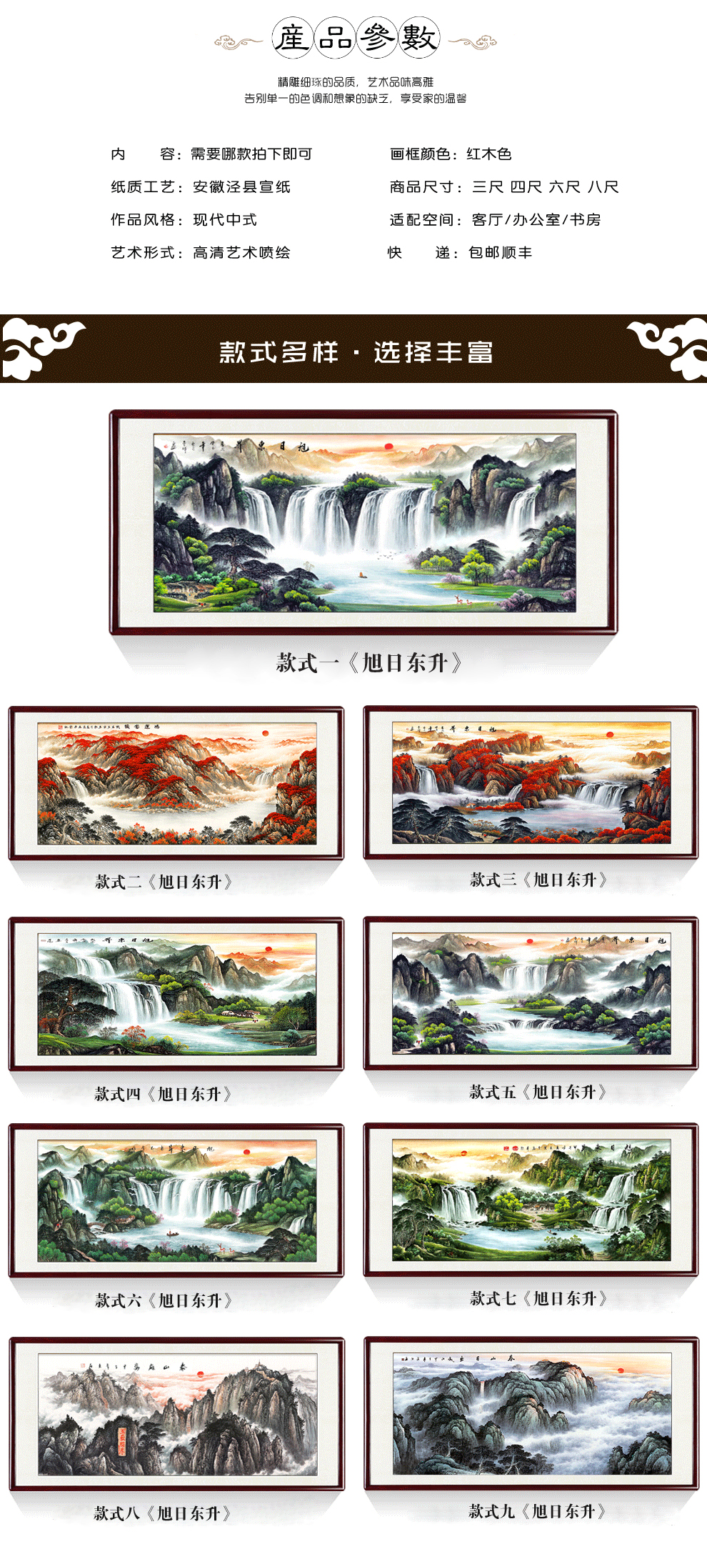 名优尚 国画風景画客厅装飾画壁画旭日东升客厅吊るし絵办公室水墨字画风景画沙发背景墙風景画靠山带框中式 款式八:泰山雄姿 大六尺装框:220*115cm【实木框+有机玻璃】【图片 价格 品牌 报价】-