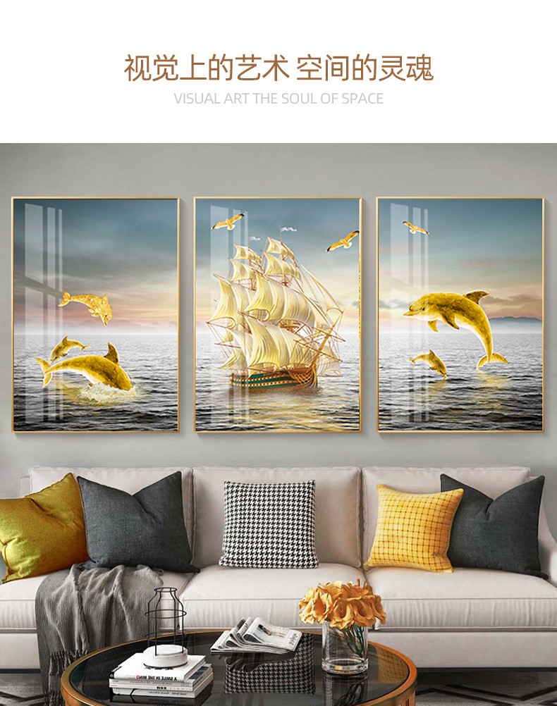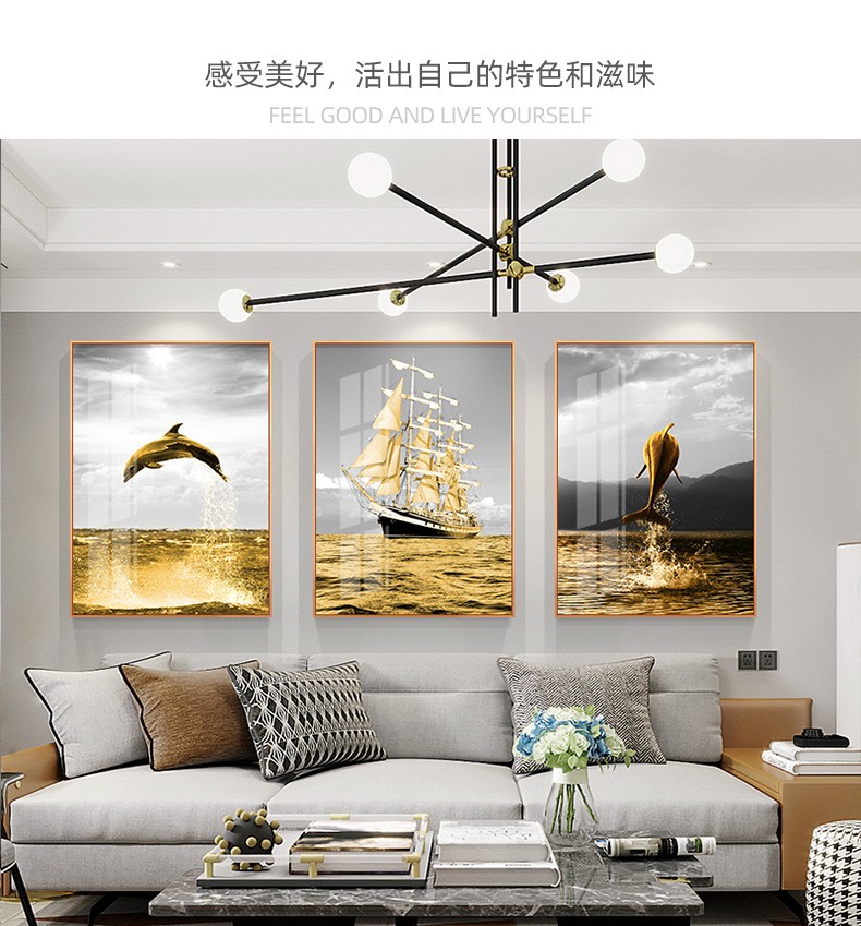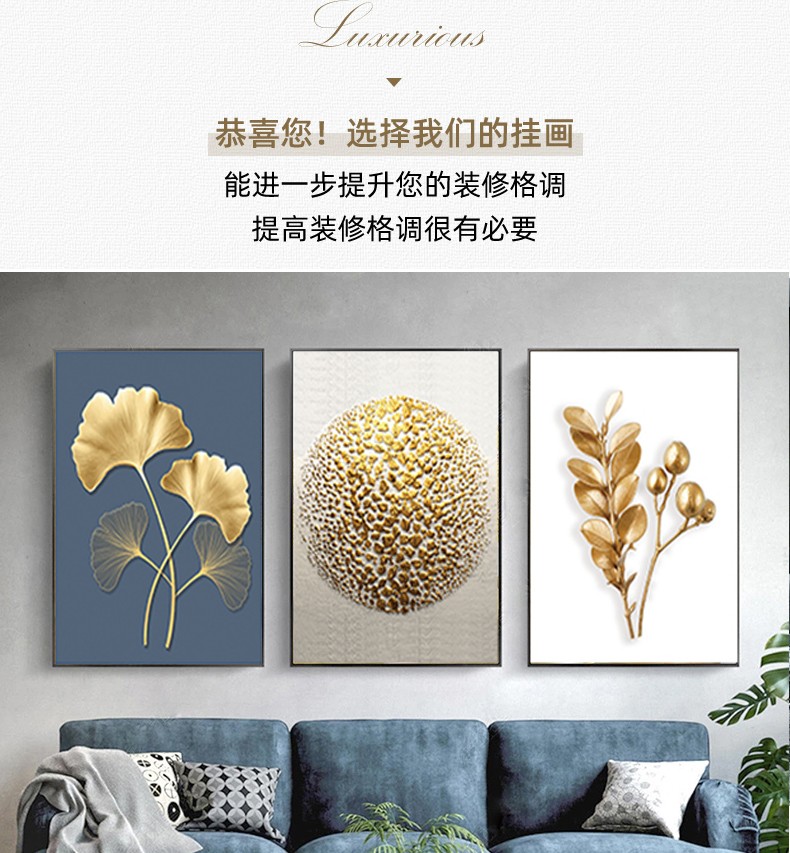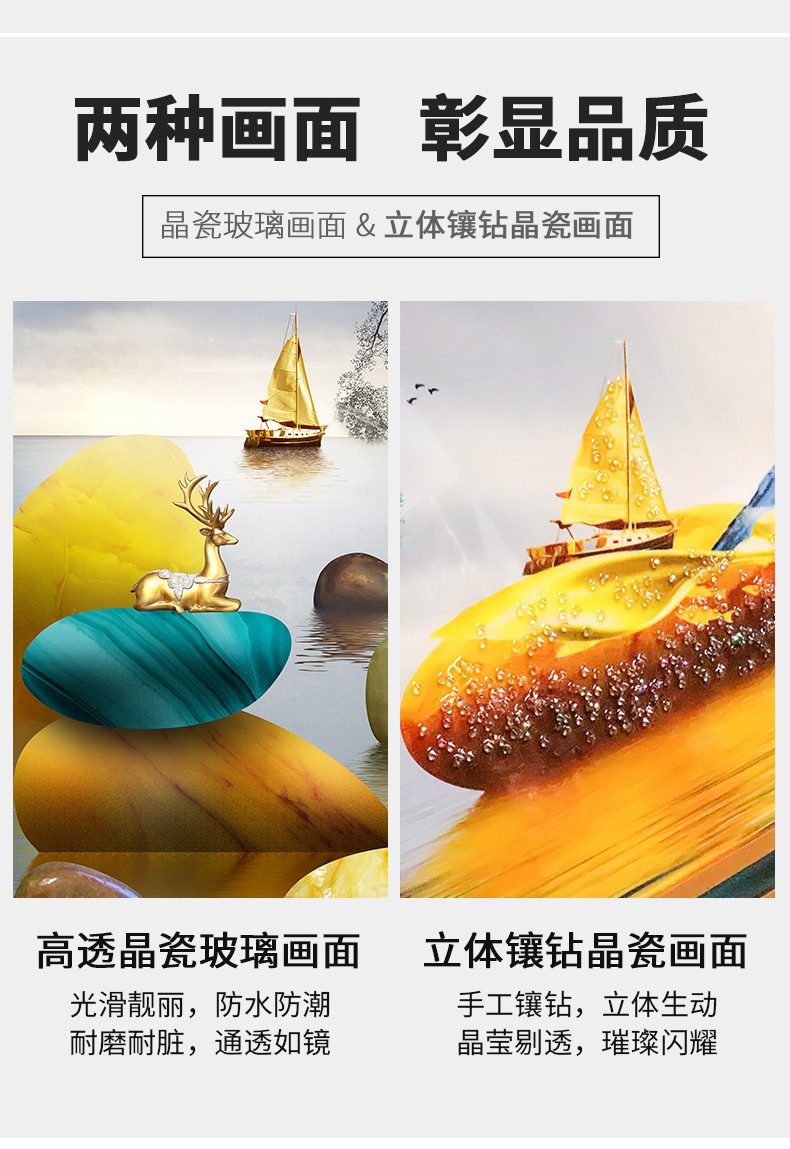 飾晴画意 轻奢客厅装飾画現代単純三連画壁画墙画沙发背景墙吊るし絵レストラン画寝室麋鹿晶瓷画 杏福生活-01 40*60cm/晶瓷画【图片 价格 品牌 报价】-