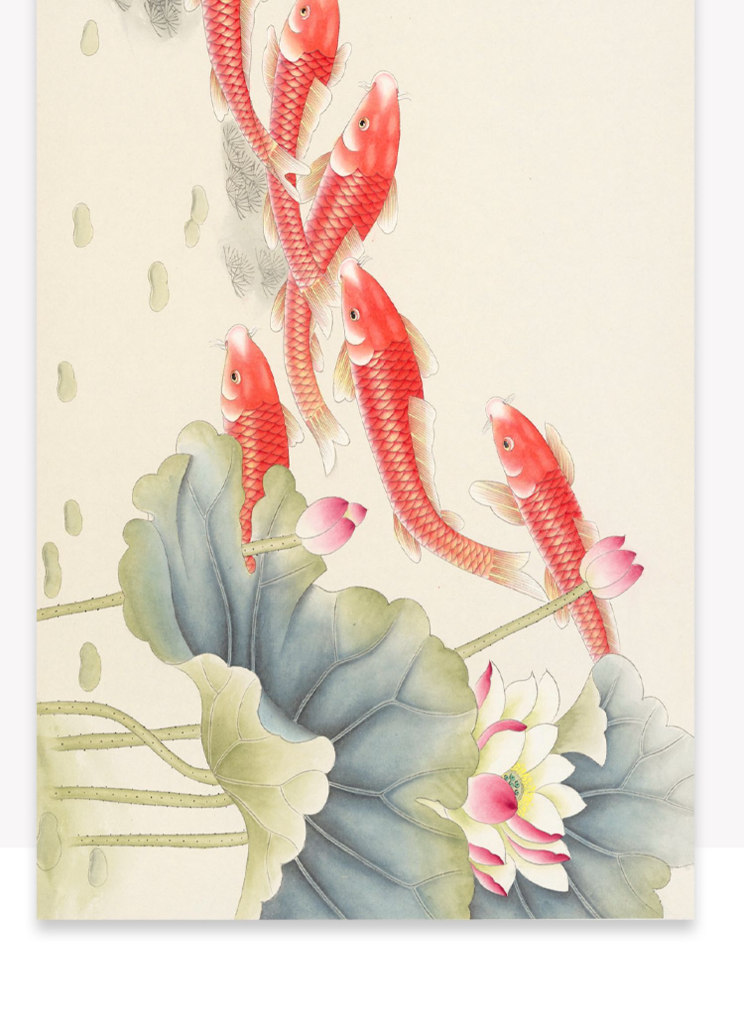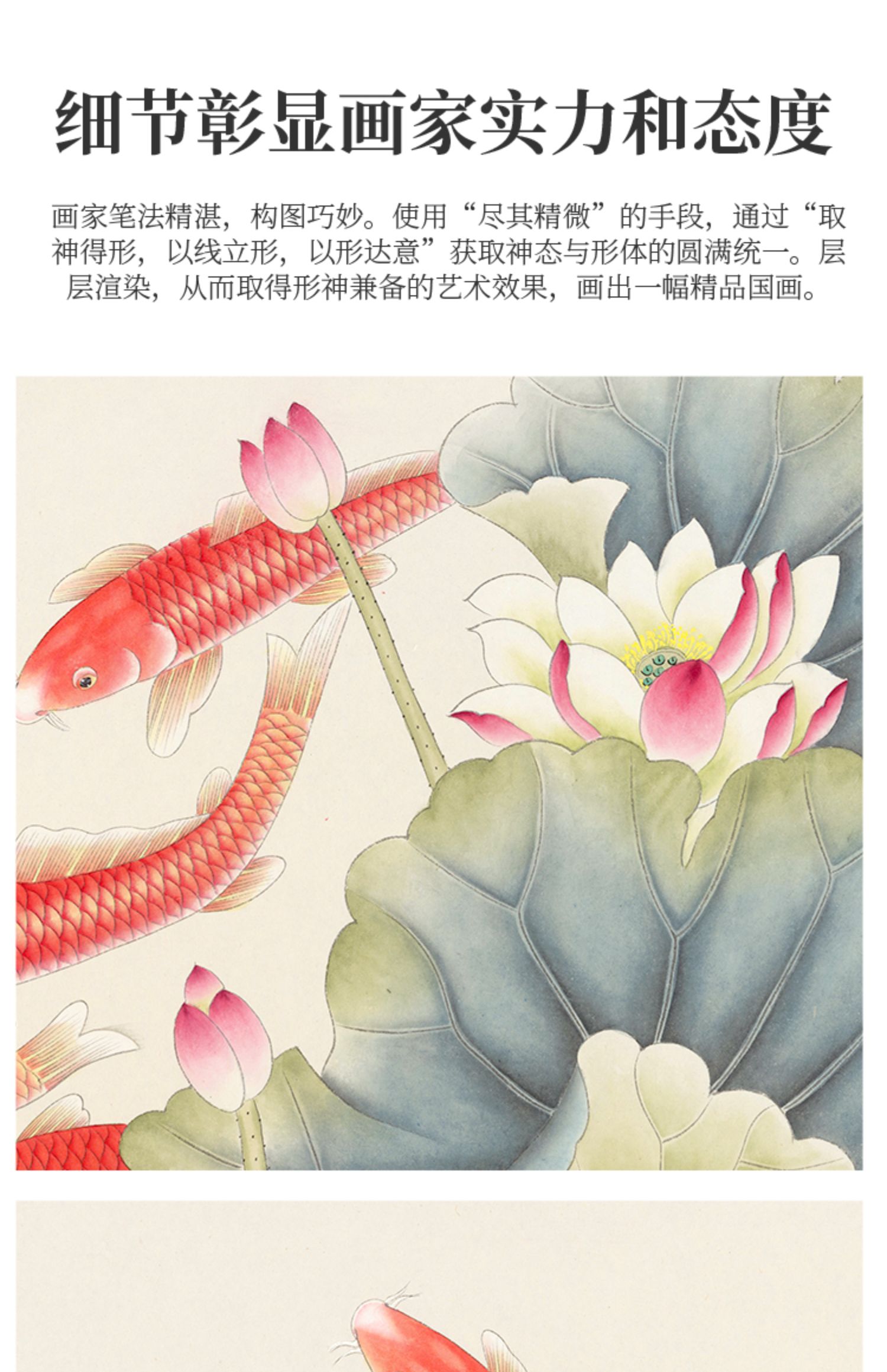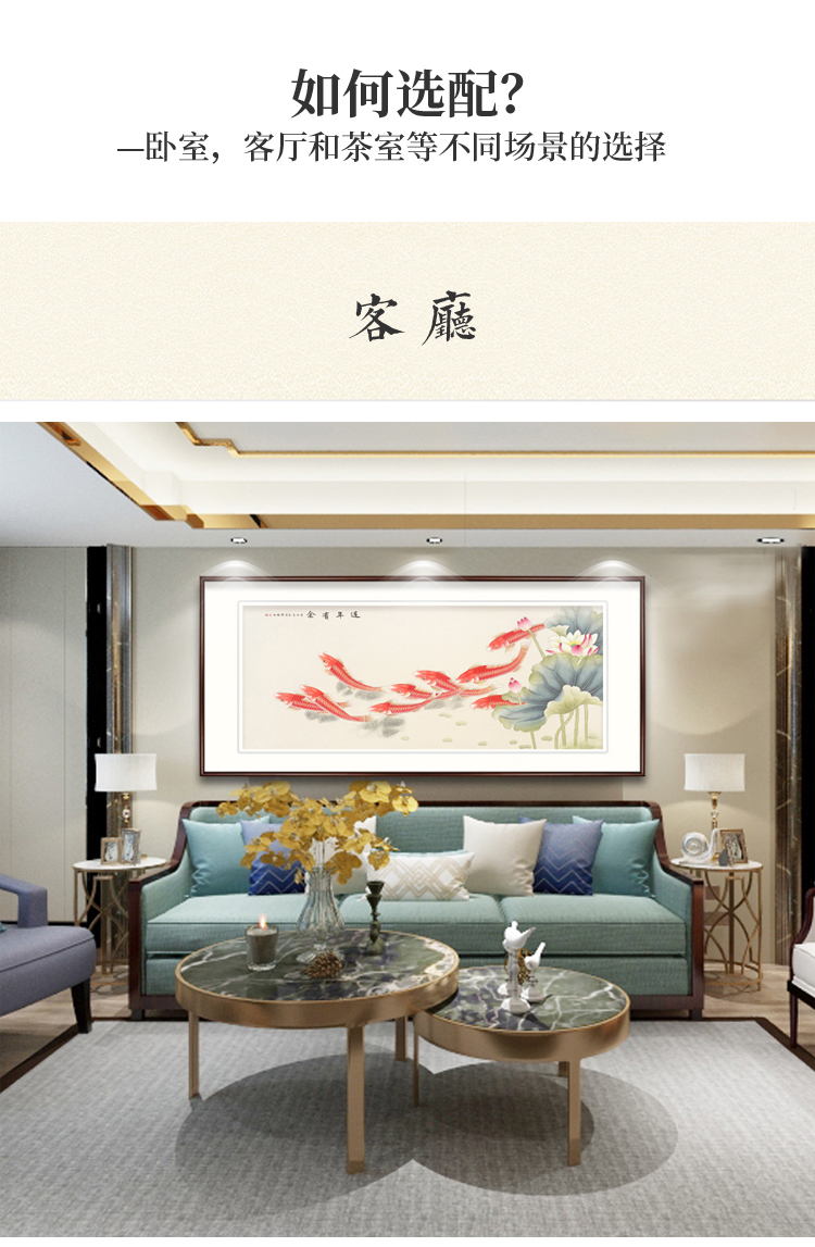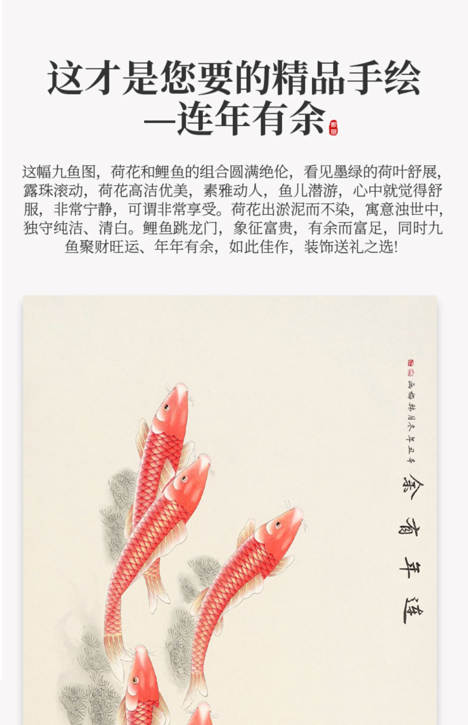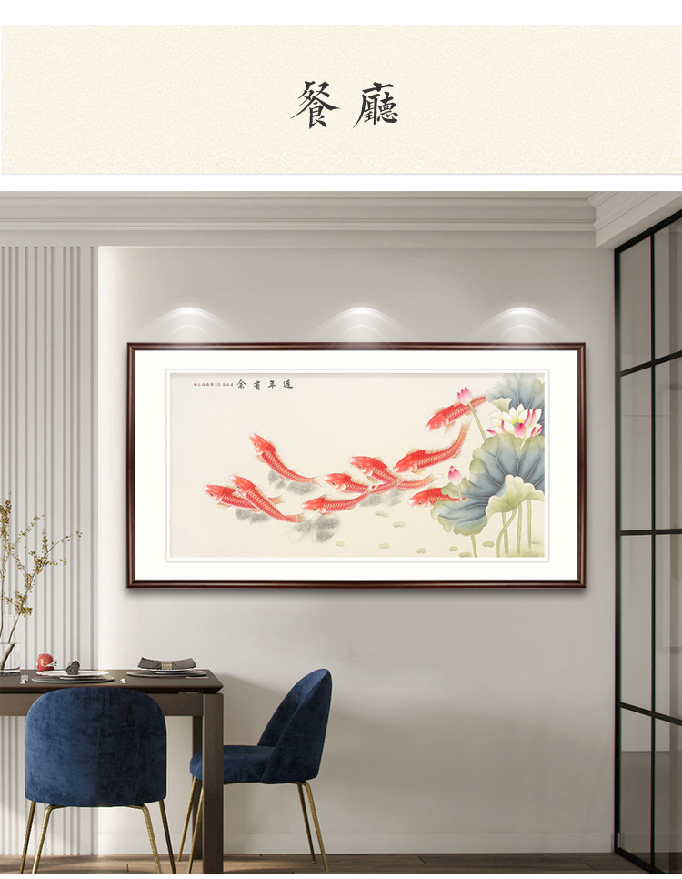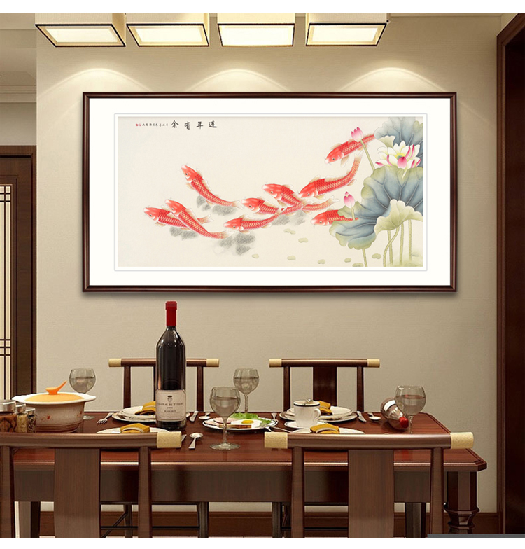 戴誉客厅レストラン装飾画沙发背景墙连年有余吊るし絵荷花九鱼图手绘国画工笔画 无框单购买画芯(附绫绢软裱)【单买画芯不包安装】 装裱165*85cm【绫绢软裱+防潮背板+实木框+【图片 价格 品牌 报价