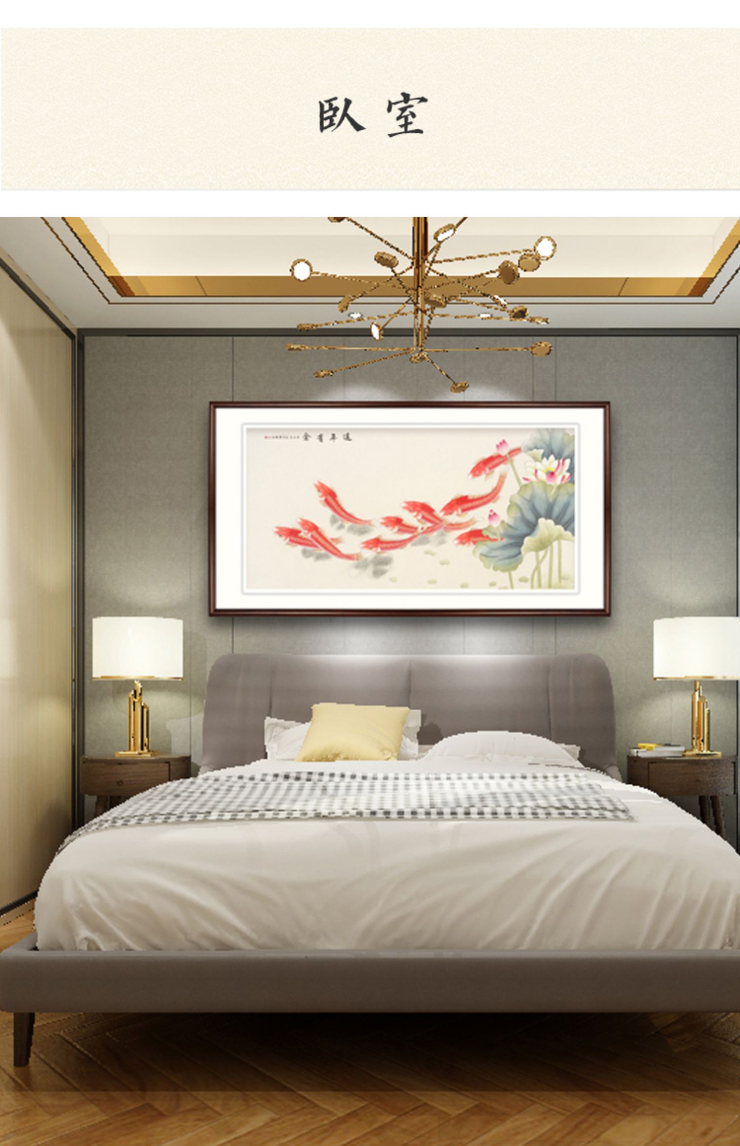 戴誉客厅レストラン装飾画沙发背景墙连年有余吊るし絵荷花九鱼图手绘国画工笔画 无框单购买画芯(附绫绢软裱)【单买画芯不包安装】 装裱165*85cm【绫绢软裱+防潮背板+实木框+
