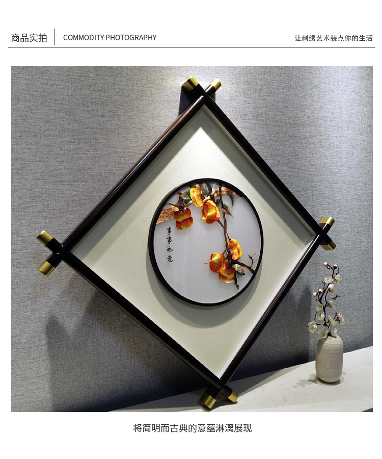 逸福瑞 新中式苏绣創造性装裱菱形吊るし絵ポーチ刺绣事事如意成品装飾吊るし絵ホーム软装乔迁礼 事事如意 实木框75*75【图片 价格 品牌 报价】-