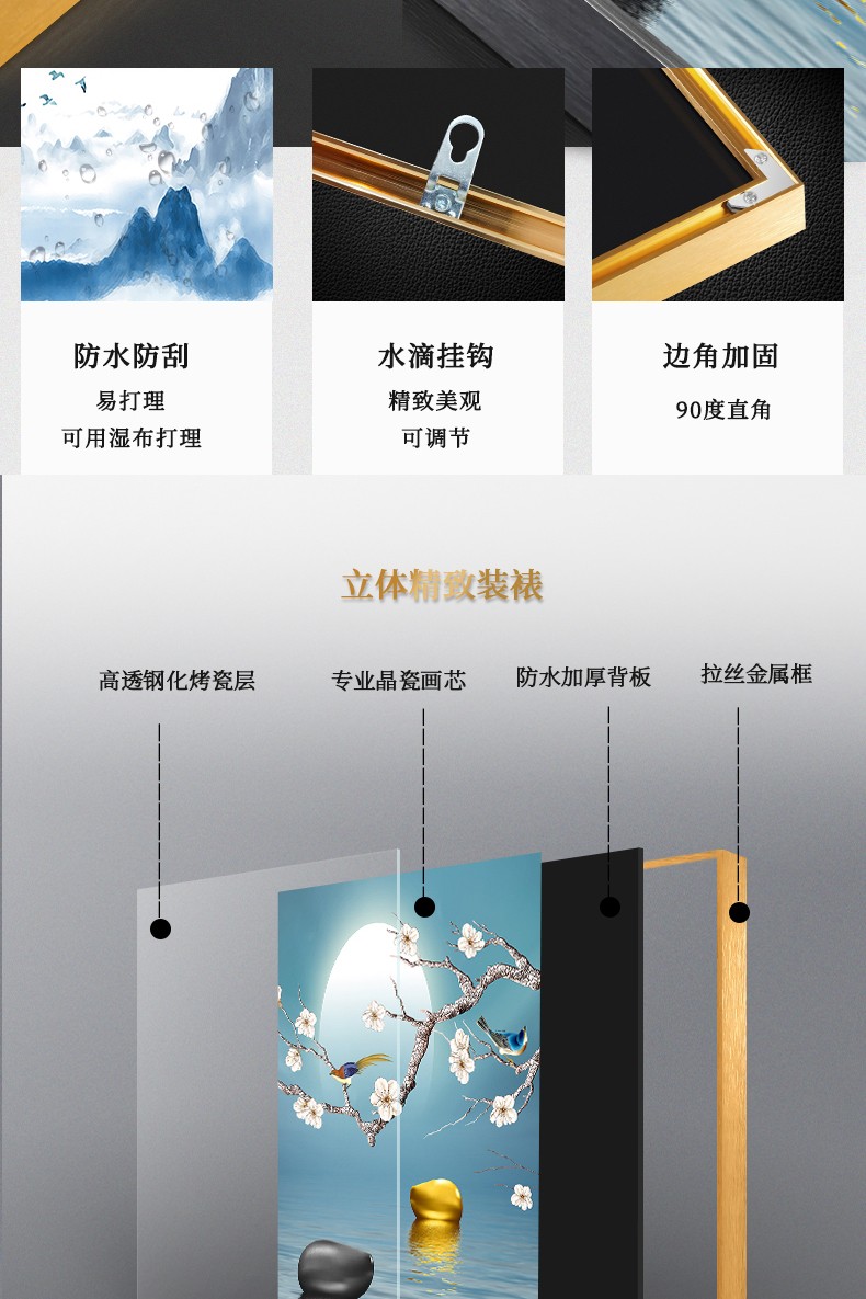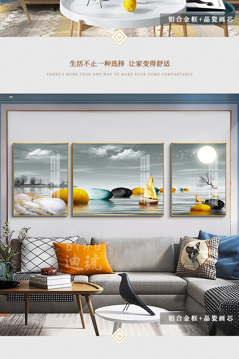 迪琥 新中式客厅装飾画沙发背景墙壁画三連画現代単純别墅大厅吊るし絵晶瓷レストラン画金属外框 1喜上眉梢-7075 中间80*60两边45*60黑框(晶瓷画面)【图片 价格 品牌 报价】-