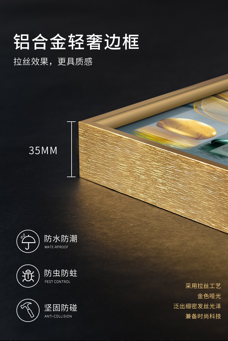 紀恒軟らかい客間装飾画現代軽奢ソファーの後ろの壁に、アイデア抽象的な背景壁壁画の金色の羽毛壁掛画のシンプルな風格を重ねて、円形の家庭壁画の吉光鳳羽-黒いアルミニウム合金フレームのサイズ210*50 cm-2.5メートルぐらいのソファーに適しています。