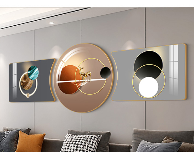 恒同 客厅装飾画新中式風景画現代単純沙发背景墙壁画轻奢大气异形圆形三連画寝室床头组合吊るし絵寓意好的画 福禄高升 60*40/60*60/60*40(晶瓷平面)【图片 价格 品牌 报价】-